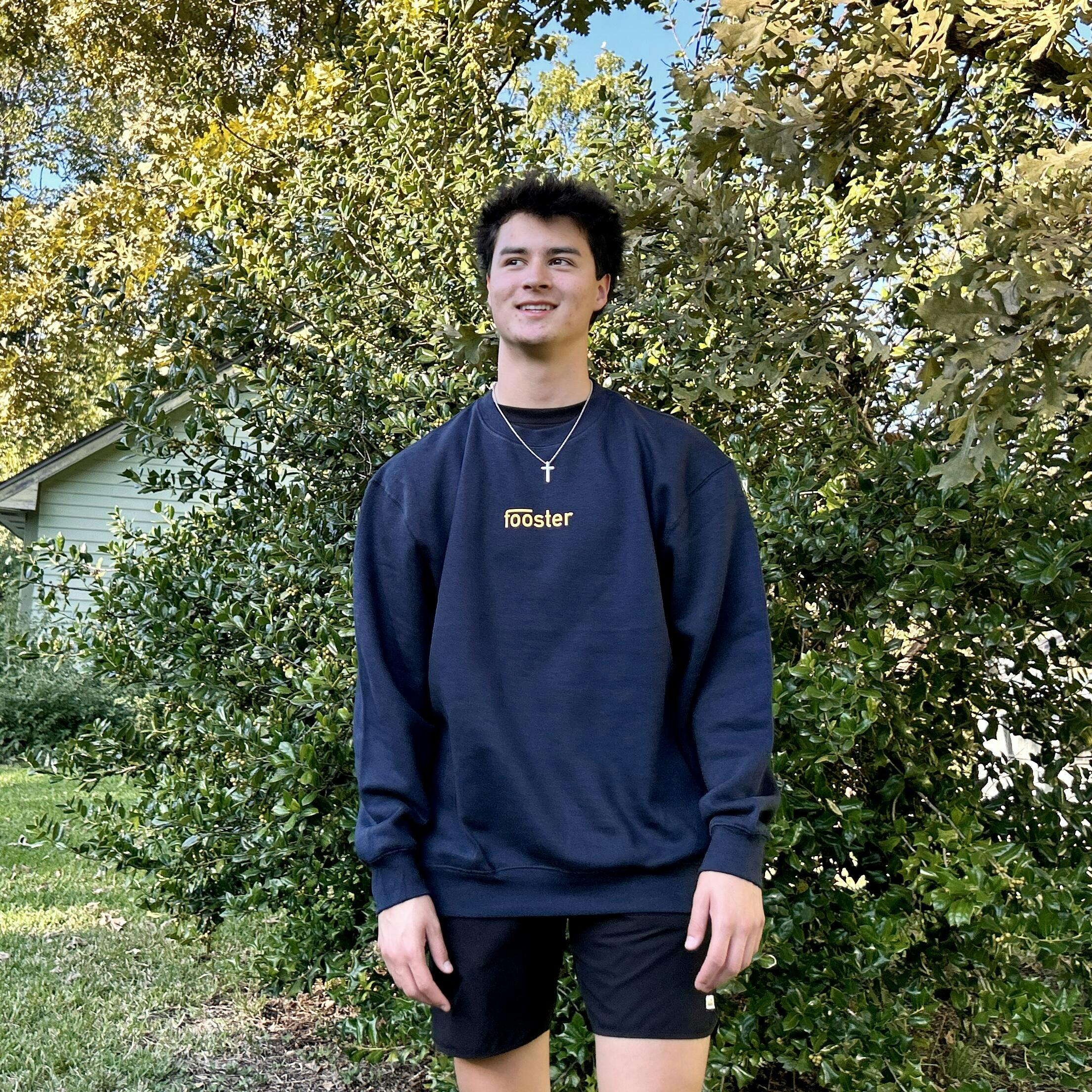 Slip into cozy confidence. The Crew Foo Sweater is a go-to essential that blends style, comfort, and brand presence. With a rich navy hue and bold front-print of “Fooster,” this sweater instantly elevates your everyday look—whether you're layering, lounging, or heading out.